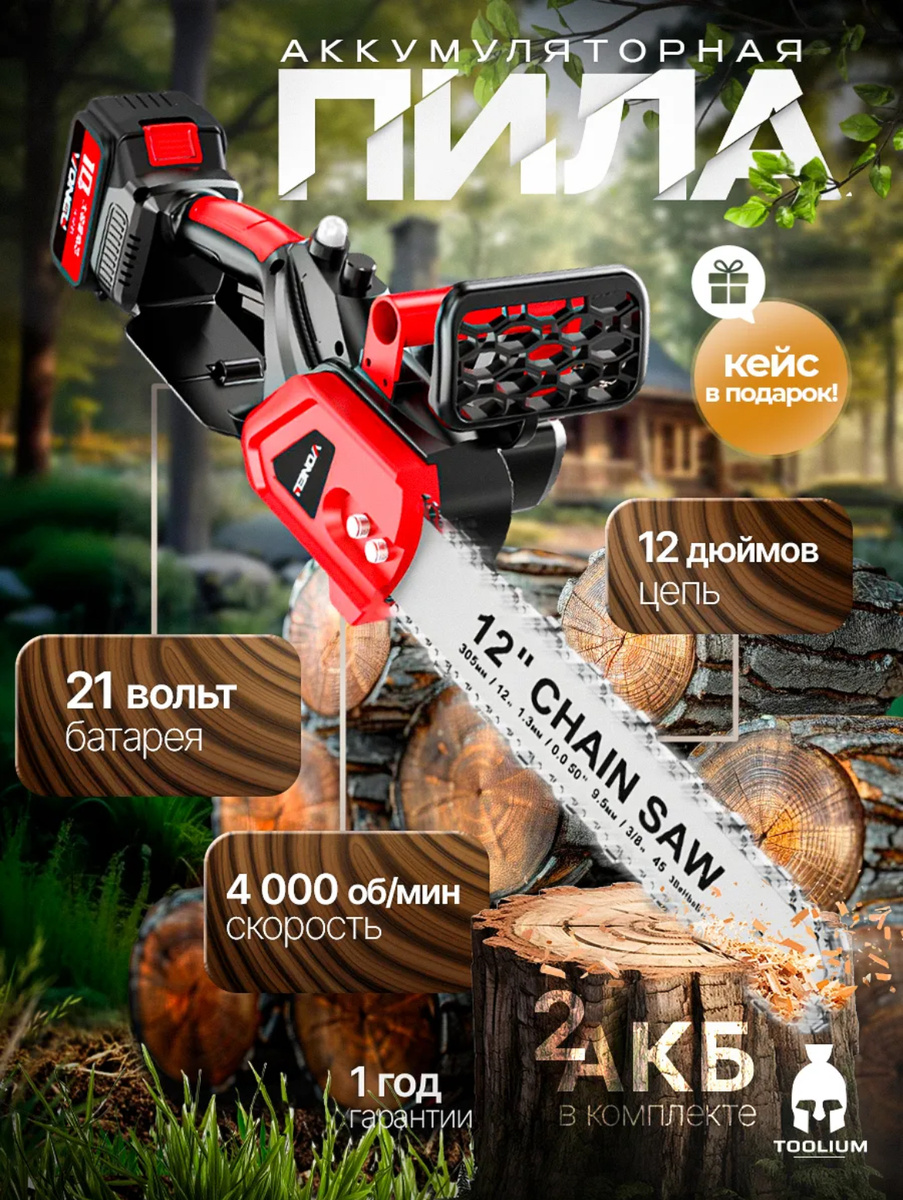 - Пила с аккумулятором легкая, мобильная и не требует подключения к электросети, что делает её удобной для работы в любом уголке сада или на даче.