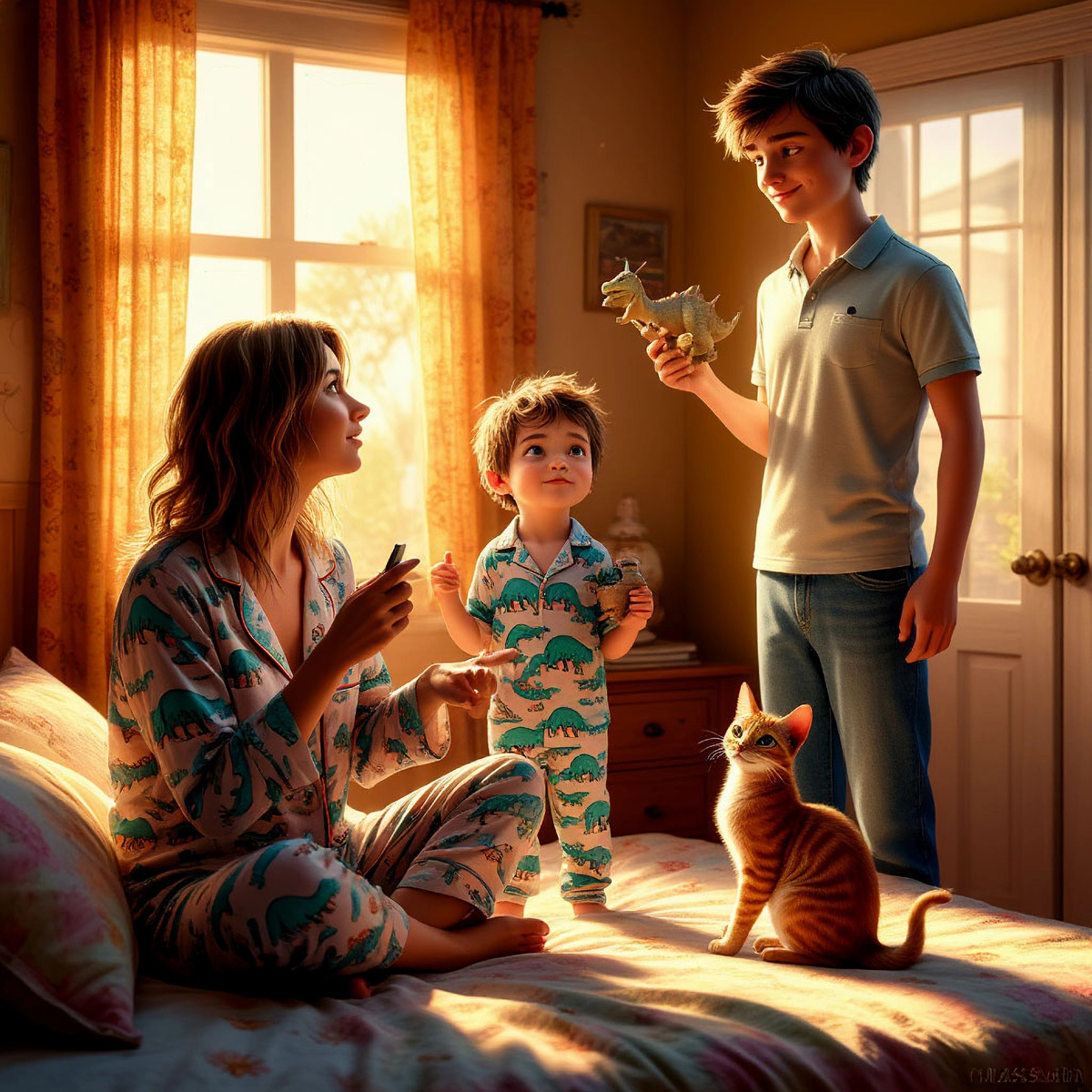 (Пишет мама, которая уже трижды сегодня пряталась в ванной от слова «мам») Вступление 6:30 утра. Просыпаюсь от того, что младший сын тычет мне в нос пальцем и орет: «Мама, соце яко! Вы!». Что означает, что солнце яркое и меня просят выключить его... Старший в это время стучит в дверь: «Мам, срочно нужны деньги. Нет, не на еду. На очень важный проект!». А кот-сфинкс Айс, словно демонстративно, ложится мне на лицо — видимо, напоминая, что его давно не гладили. Я ещё не успела открыть глаза, но уже понимаю: сегодня будет тот самый день, когда я стану героем местного мамского сообщества. Или сойду с ума. Варианты 50/50. Утро — битва за штаны, или «Эти злые змеи!» 7:00. После третьей чашки кофе (да, я уже успела выпить три — не спрашивайте, как) начинается священный ритуал: одевание младшего. Сегодня Артём объявил, что штаны — это «злые змеи, которые хотят его съесть». Попытка натянуть их силой привела к истерике уровня «Оскар-2024». Мой лайфхак: Достаю запасные «волшебные» стике