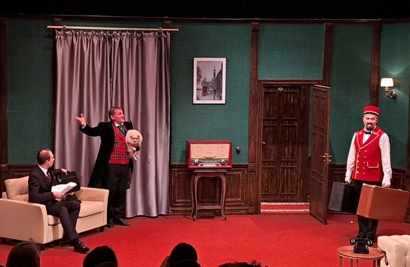 Недавно я смотрела спектакль по пьесе Рея Куни в театре Всеволода Шиловского, а теперь посмотрела еще один — в Театре Иллюзии, в котором раньше не бывала. Здесь спектакль «Номер 13» идет в постановке режиссера Артема Бибилюрова. В основе сюжета комедия положений — Он, Ричард Уилли, помощник премьер-министра (Павел Васильков) и Она, Джейн Уорзингтон, секретарша (Мария Монич) встречаются в номере гостиницы, и всё бы прошло гладко, если бы не окно... В историю постепенно добавляются новые и новые действующие лица, клубок вранья только растёт. Главные декорации здесь Окно и Шкаф, они играют ключевую роль вместе с Ричардом Уилли и Джорджем Пигденом (Олег Тарасов). В шкафу побывали практически все герои спектакля, а входили и выходили они из номера чаще через окно. В комедии сразу несколько любовных линий, иногда превращающиеся в треугольники, иногда правда мифические. Горничная Мария (Светлана Варецкая-Загородняя), которая вроде бы не имела отношения ни к одной интриге, и то стала невестой,