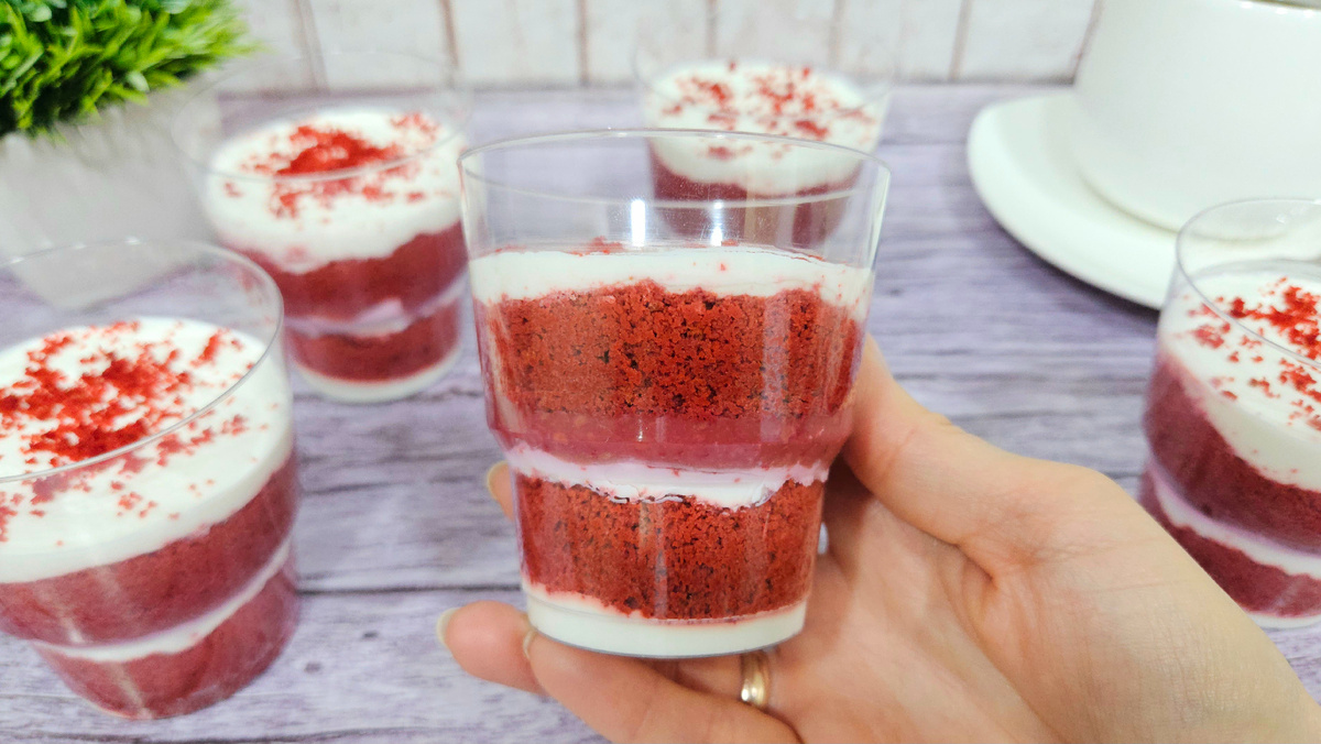 Всем привет👋 Предлагаю приготовить вкусный и эффектный диетический трайфл Красный бархат с творожным кремом и ягодной начинкой. Выход: 5 стаканчиков объемом 200 мл, вес 800 гр КБЖУ на 100 гр: 137,11/9,18/7,11/8,53 КБЖУ в 1 шт: 219,38/14,67/11,38/13,65 Подсластитель - 1 грамм моего подсластителя пребиосвит фитнес = 10 гр сахара Конфитюр. Предварительно размороженную малину поместить в сотейник, добавить крахмал и подсластитель. Пюрировать блендером. Варить на среднем огне, постоянно помешивая, до загустения массы. Накрыть пищевой плёнкой в контакт и дать остыть. По желанию количество конфитюра можно увеличить в 2 раза и добавить ещё один слой. Бисквит. Белки отделить от желтков. К кефиру комнатной температуры добавить краситель (у меня гелевый, водорастворимый фирма Art Color). Перемешать. К желкам добавить подсластитель, кефир и масло. Перемешать венчиком. Всыпать просеянную муку с какао и разрыхлителем, перемешать. Белки взбить с щепоткой соли до устойчивых пиков. В два захода