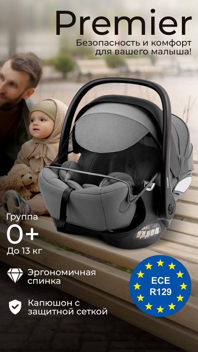 Автокресло Sweet Baby Premier: адаптируется под малыша. Представляем автолюльку для детей ростом 40-87 см (до 13 кг). Ключевые особенности: • Регулируемый подголовник (8 положений) для поддержки головы. • Съемный вкладыш с эффектом памяти для максимального комфорта. • Глубокий капюшон защищает от солнца и ветра. • Регулируемая спинка, которая раскладывается и адаптируется под малыша, обеспечивая удобное положение для сна. • Система защиты L.S.P для безопасности при боковых ударах. • Удобная ручка для переноски. • Трехточечные ремни безопасности надежно фиксируют ребенка. Совместимо с колясками Sweet Baby (адаптеры продаются отдельно). Соответствует стандарту UN R129 — высокое качество и безопасность! Выбирайте Sweet Baby Premier для вашего малыша!