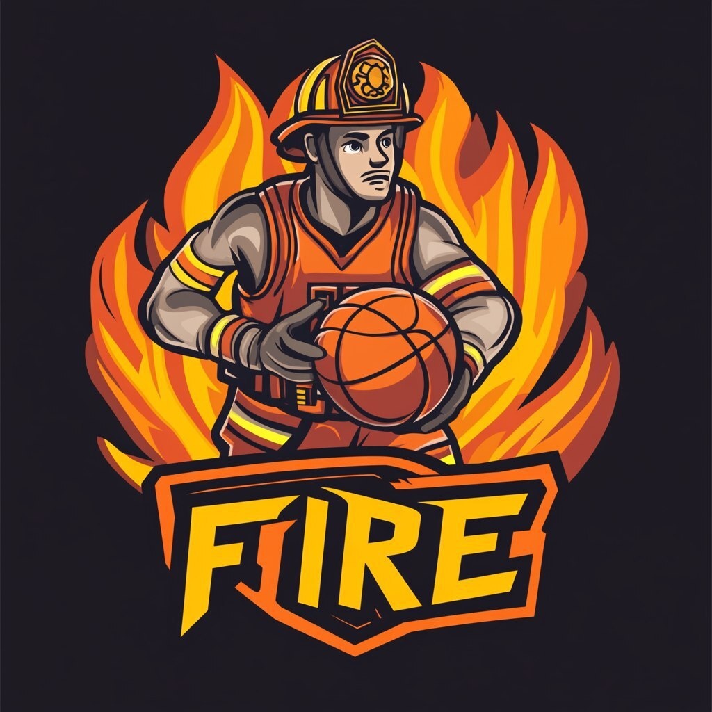 Создано на основе запроса: a NBA type basketball logo for a basketball team with a firefighter holding a basketball
