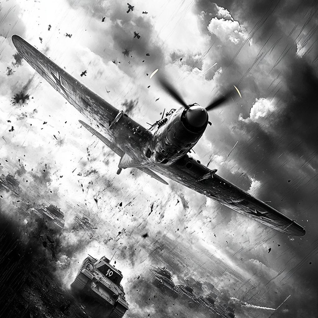 "Ил" Алексея нёсся над степью на высоте 300 метров. Впереди — дым, пыль и вспышки. Гриша вёл огонь из пулемёта, отгоняя "Мессершмитт", который пытался зайти сзади. Алексей маневрировал, уводя машину из-под трасс. Сердце колотилось, но руки работали чётко.