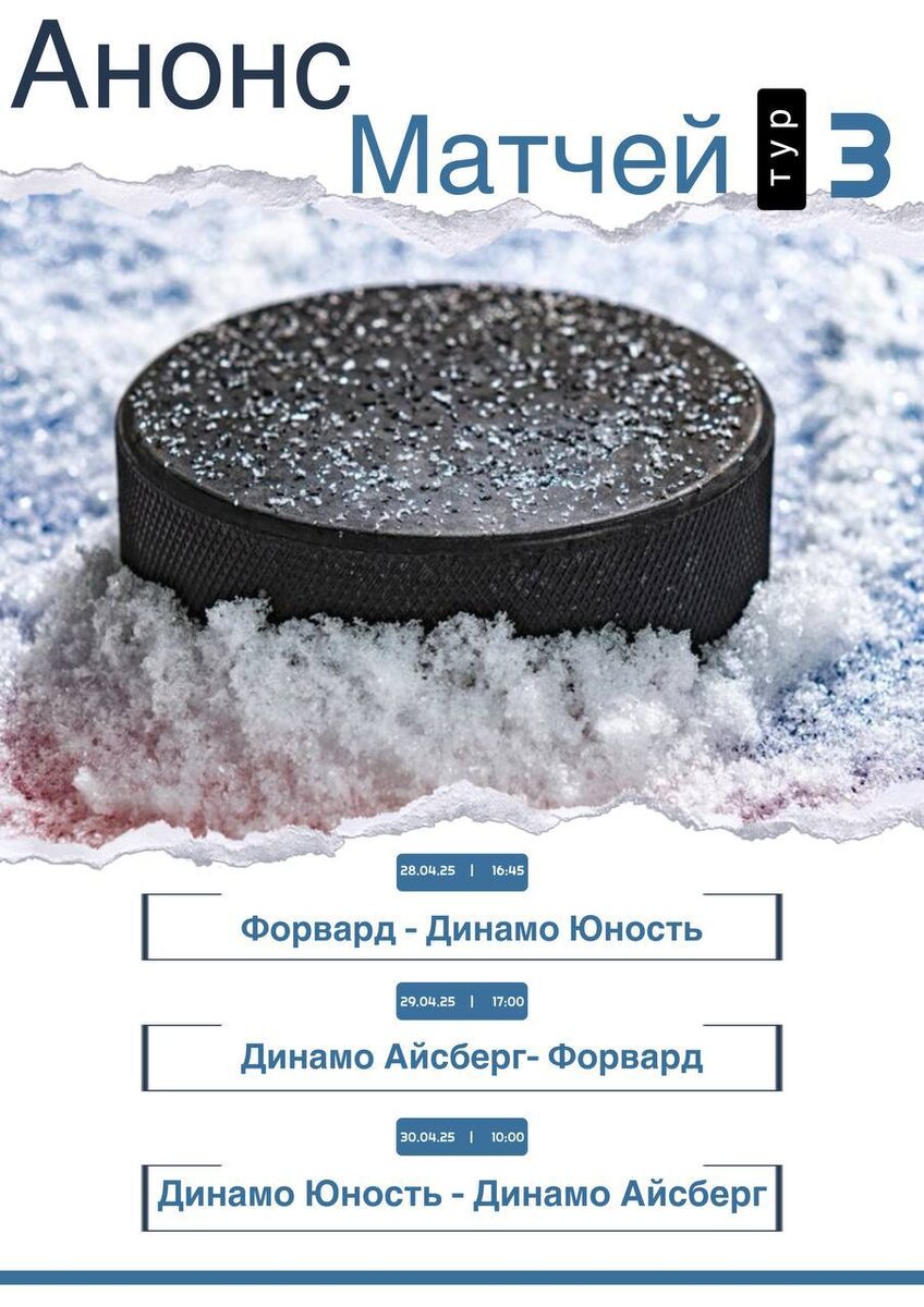 Первенство Ленинградской области среди команд 2008-2009 г.р. Сезон 2024 – 2025 3 Тур 🥇 🧊 🏒 📌Сроки проведения: 28 - 30 апреля 2025 📍г. Кингисепп, ЛА «Олимп» 📝Рады приветствовать Участников соревнований: • Форвард (г. Лодейное Поле) • Динамо Айсберг (Новгородский район) • Динамо Юность (г. Кингисепп)