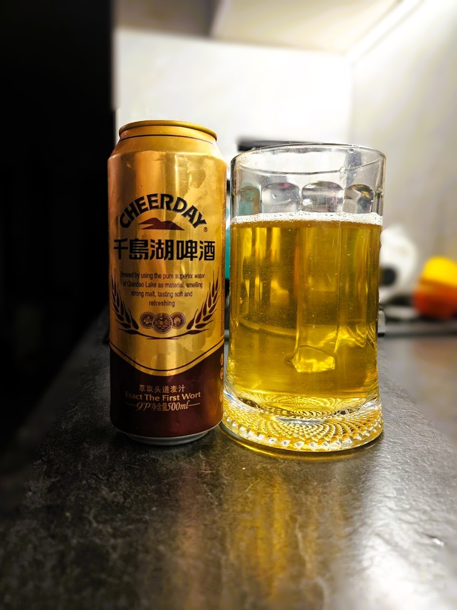 Всем привет. Давно на дегустации не было китайского пива, так что исправляюсь. Пиво производства пивоварни Hangzhou Qiandaohu Beer Co. Hangzhou Qiandaohu Beer Co., Ltd. – пивоварня, расположенная в городе Цяньдаоху, в округе Чунаньань, Ханчжоу, провинция Чжэцзян, Китай. Она производит несколько марок пива, в том числе Cheerday. Компания названа в честь озера Цяньдао, рядом с которым расположены ее штаб-квартира и пивоварня. Классифицируется как солодовое светло пиво фильтрованное пастеризованное, содержит 3,6% алкоголя и плотностью 9%. Продается в банках по 0,5 и 1 л. Банка в золоте с кучей китайских надписей и почему то с пшеничными колосками (возможно и не пшеница, специалисты поправьте). Стоимость 140-180 рублей за 0,5 л. в зависимости от места где купите. Состав удивил: вода, ячменный солод, рис, хмель. Цвет пива золотитый и очень близок к цвету банки. Запах пива практически отсутствует, только если долго внюхиваться, то почувствуется солод. Пена не отстает от запаха,ее практическ