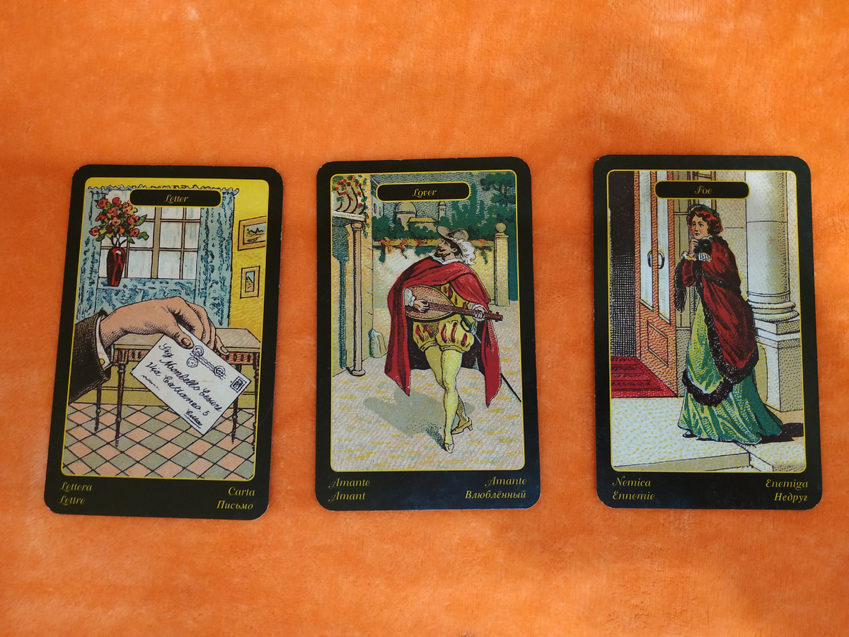" Недруг". Эта карта сразу добавляет серьёзности ситуации. " Недруг" в раскладе предупреждает о скрытых угрозах, внешних или внутренних. Кто-то или что-то посеяло сомнения в сердце вашего любимого. Это не обязательно прямое предательство или вмешательство, но, скорее всего, речь о чьём-то влиянии — завуалированном, но настойчивом. Возможно, кто-то в его окружении завидует вашим отношениям и незаметно внушает ему тревогу: под видом заботы, шуток или "доброжелательных" советов. Такой человек или обстоятельство подталкивает его к пересмотру планов, заставляя усомниться в правильности выбранного пути. Порой " Недруг" показывает и внутренние страхи: страх быть обманутым, использованным, остаться уязвимым. И чем ближе становитесь вы, тем сильнее активизируются эти инстинкты самозащиты. Он может даже сам не осознавать, откуда берутся сомнения — лишь ощущать тревогу и действовать осторожно. Отсюда — внезапные изменения в поведении, желание держать дистанцию, вопросы без объяснений. Очень важно понимать: "Недруг" действует тайно, через эмоции, а не через факты. Важно не искать виноватых напрямую, а дать вашему партнёру пространство для того, чтобы он смог сам отличить свои настоящие чувства от навязанных страхов.