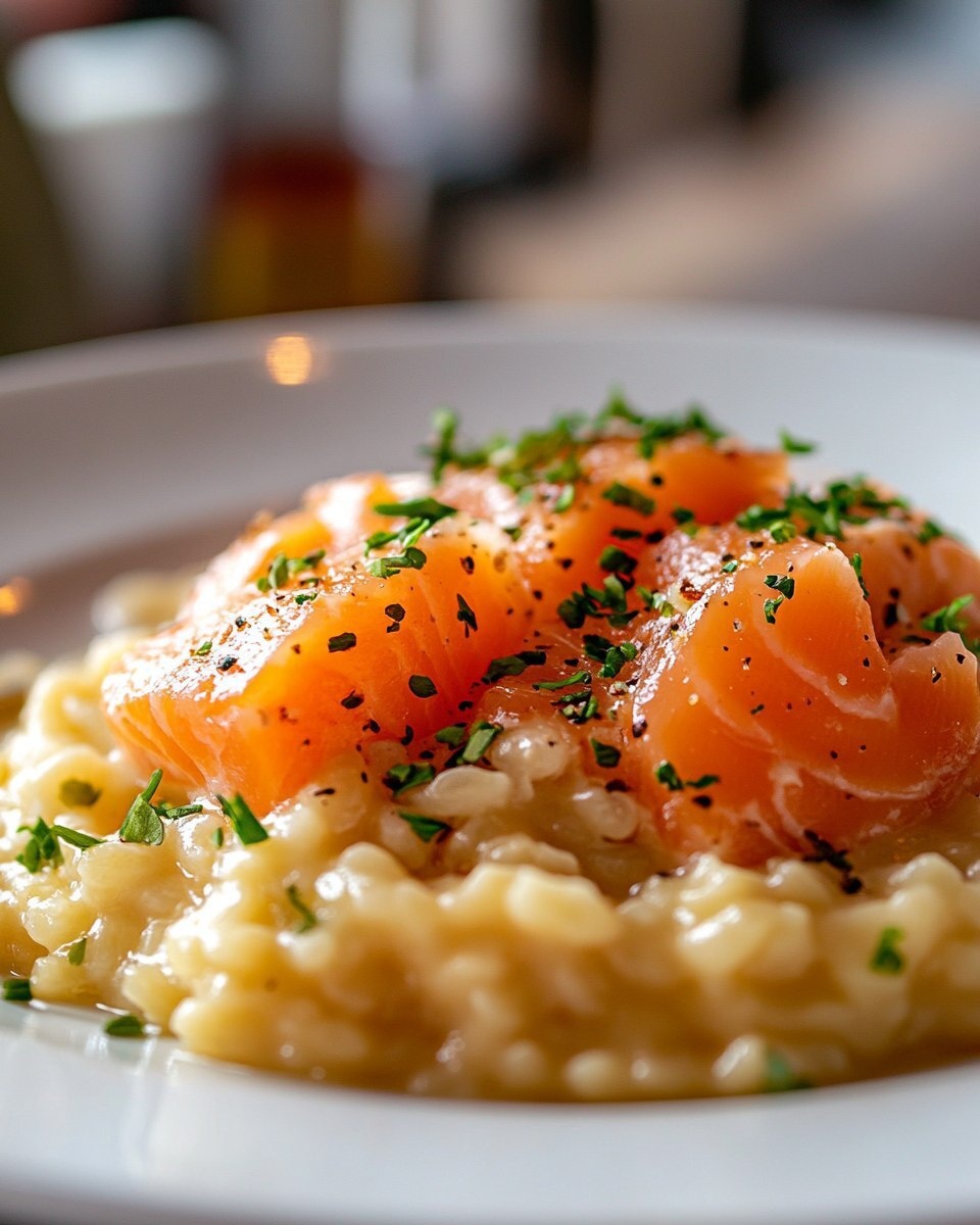 Создано на основе запроса: Title: Smoked Salmon Lemon Risotto | Close-up Shot right view, taken by a photographer with a high quality