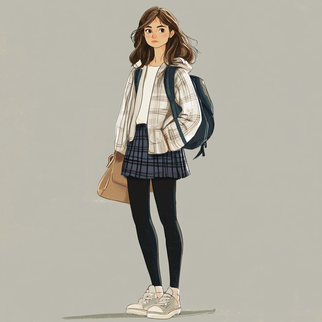 Создано на основе запроса: female teenager school fashion standing