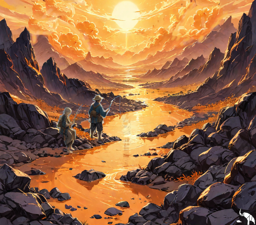 Приятели прошлись по камням, свернули к какому-то оранжево-коричневому ручью, устали и присели отдохнуть.