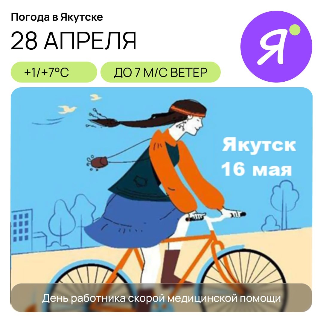 Доброе утро! На работу на велосипеде 🚲 Якутск присоединяется к Всероссийской акции «На работу на велосипеде» Для участия, достаточно сесть на велосипед и отправиться на работу/учебу. По пути можно заехать на «энергетические точки», на которых можно встретить единомышленников, узнать о специальных предложениях и скидках от партнёров акции. Локации "энергетических точек" будут известны позже Акция пройдет 16 мая, не забудьте сделать пост в соцсетях с тегом #b2w_ykt Online Якутия | Подписаться