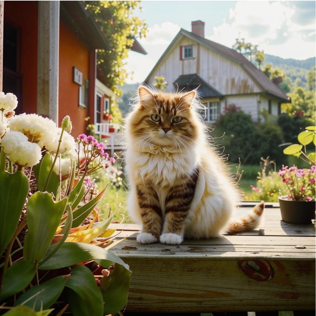 Подхожу к дому, на крыльце, греясь на теплом майском солнышке, восседает большой пушистый кот.