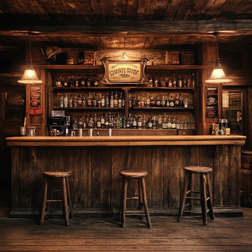 Создано на основе запроса: a western bar straight on line of sight with nobody in the frame