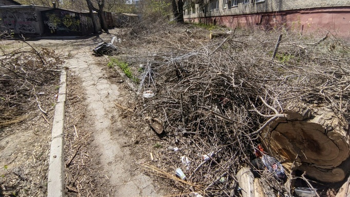 Жители дома в центре Барнаула пожаловались на свалку веток под окнами, которой уже полгода