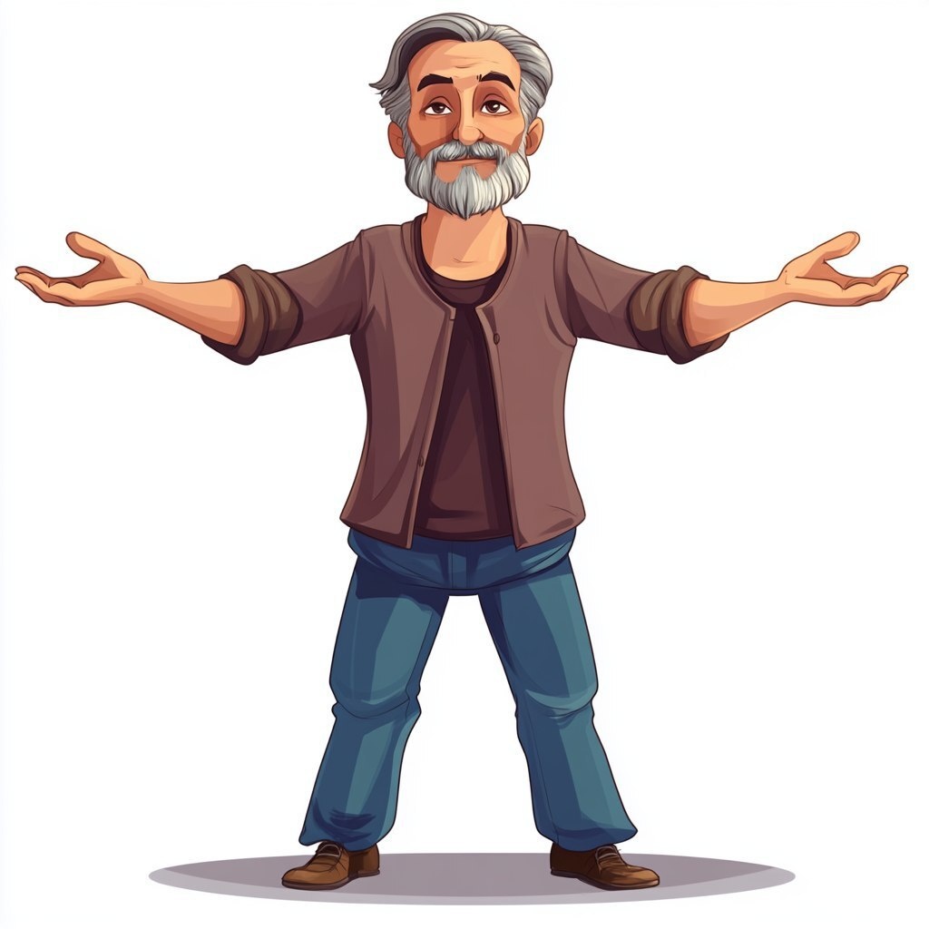 Создано на основе запроса: Cartoon style middle age man with pot bell in a T pose