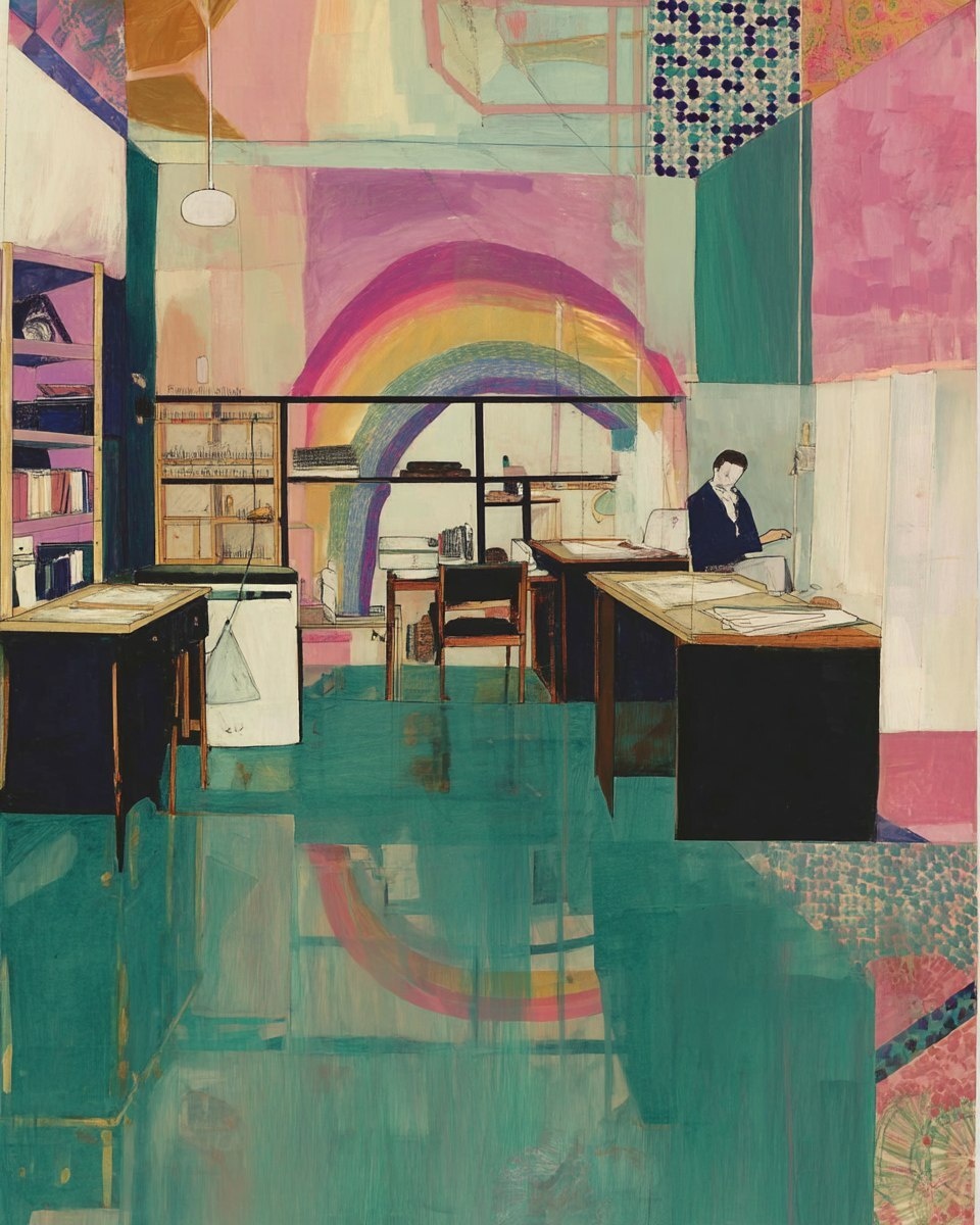 Создано на основе запроса: voxel hypnagogic maximalism physicsbased paper collage, in the style of suburban flat shading, simplified figures, purple rainbow, studyplace, expert draftsmanship, sculpture, oil pencil sketch --- Автоперевод: Воксель гипнагогический максимализм на основе физических бумажных коллажей, в стиле пригородной плоской затенения, упрощенных фигур, фиолетовой радуги, учебного заведения, экспертного рисования, скульптуры, эскиза нефти -карандаша Как тебе эта иллюстрация? 🤔 https://dzen.ru/id/65c0c65c86e4f837c27b24d7 #ИИ #AI #нейросеть #midjourney #art