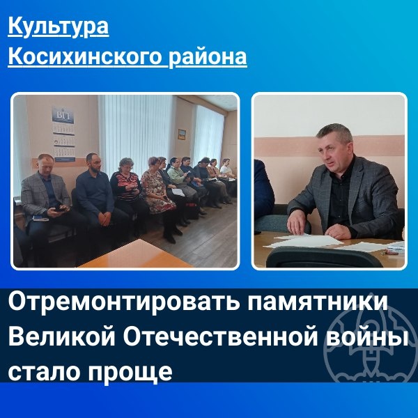 Отремонтировать памятники стало проще! С 1 сентября 2024 года в России действует упрощённый порядок ремонта объектов культурного наследия, посвящённых событиям, участникам и жертвам Великой Отечественной войны. Об этом сообщил главам сельсоветов Косихинского района председатель комитета по культуре и туризму Константин Синкин на очередном совещании. Другими словами, теперь администрация села самостоятельно может провести некоторые виды ремонтных работ памятников воинам ВОв, оговоренных в приказом Минкультуры. Для этого перед началом работ необходимо уведомить орган охраны объектов культурного наследия за 5 рабочих дней до проведения работ. По завершении в течение 3 рабочих дней нужно направить в орган охраны отчёт, включающий перечень выполненных работ и фотофиксацию результатов. При этом остаются обязательные требования: при р... Ссылка на публикацию #Косихинскийрайон