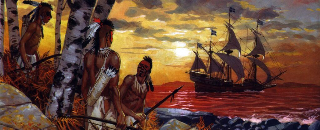 Как уже упоминалось, Колумб сильно ошибался в расчетах размеров Земли. Его главной целью было найти западный морской путь в Индию (собирательное название для Южной и Восточной Азии), богатую пряностями, золотом и другими ценными товарами. Поэтому, когда 12 октября 1492 года его корабли достигли Багамских островов, он был твердо уверен, что попал куда-то на окраину Азии, возможно, к островам Индийского океана. Соответственно, местных жителей – представителей народов таино и араваков – он назвал «индейцами». Это ошибочное название закрепилось за коренными народами Америки на долгие века. (Уточнение «краснокожие» появилось позже из-за обычая некоторых племен раскрашивать тело красной охрой).