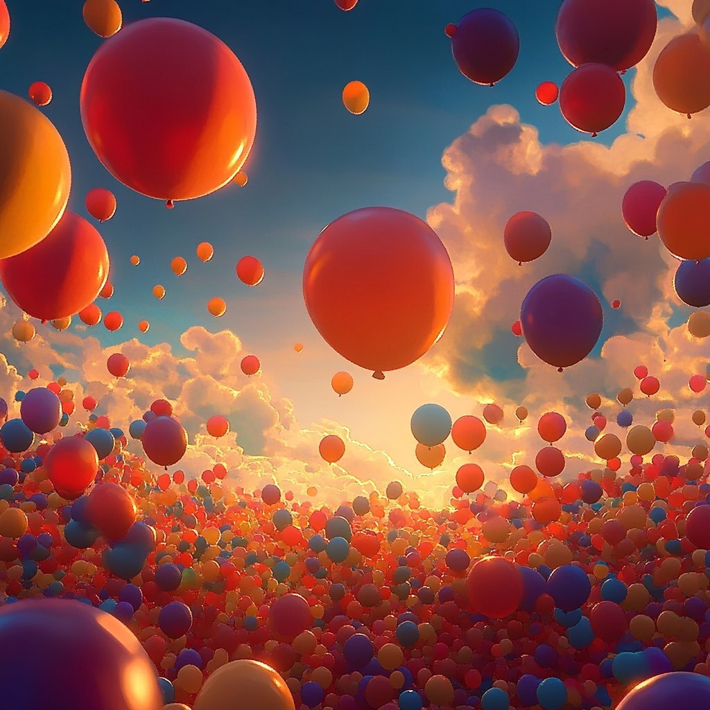 Создано на основе запроса: Colorful balloons floating in the sky disney style Pixar style