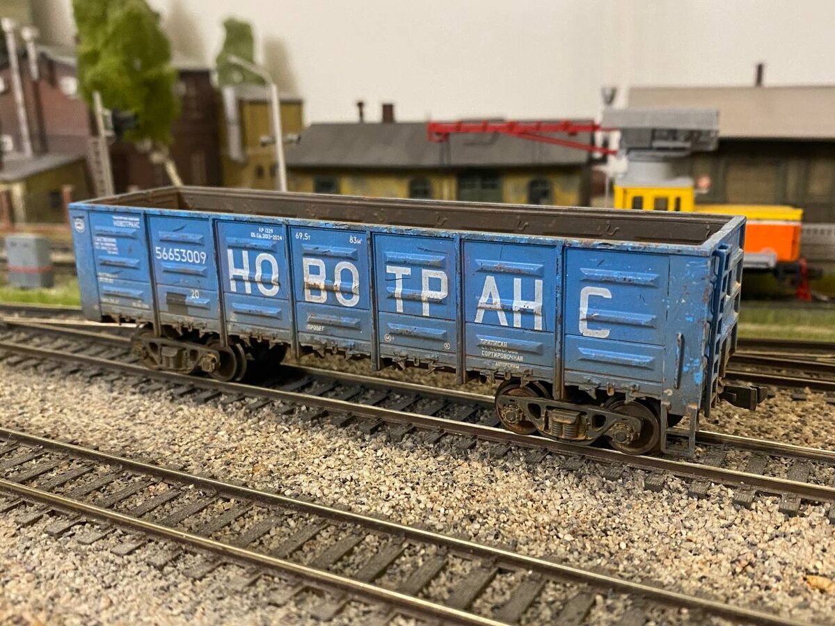Модель полувагона 12-132, построенная из набора для самостоятельной сборки производства SIN models в масштабе 1:87. Вагон изготовлен практически "из коробки", а его основной особенностью стали следы эксплуатации, нанесенные по мотивам фотографий реальных вагонов. Модели подвижного состава со следами эксплуатации на макете смотрятся безусловно намного выигрышнее. И иногда я практикую создание таких моделей, правда происходит это нечасто. В моем портфолио это первый оживленный таким образом вагон серии 12-132 и второй с логотипом "Новотранс" (первый вагон этой транспортной компании был серии 12-132-03) Сам набор от SIN models сделан хорошо, за свои деньги - отличный вариант как для новичков, так и для опытных моделистов. Модель получила металлические колесные пары, стендовые модельные сцепки типа СА-3, дополнена металлическими поручнями и воздушными магистралями. Декали к вагону имеются в комплекте, выполнены они достаточно хорошо по фотографии реального прототипа и передают все детали,