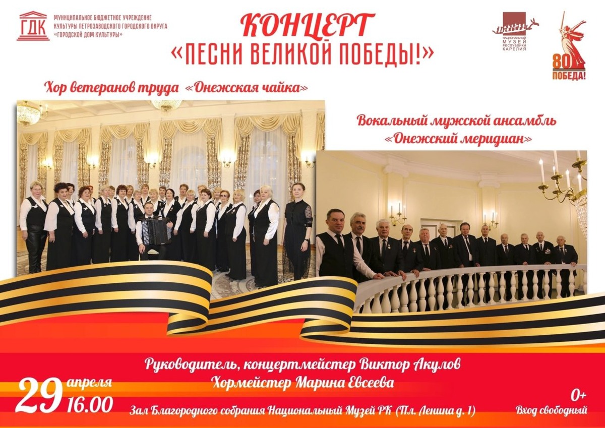 29 апреля в 16:00 в зале Благородного собрания Национального музея Карелии состоится концерт «Песни Великой Победы!» (0+). Это мероприятие посвящено 80-летию Победы и призвано почтить память тех, кто отстоял свободу нашей страны.