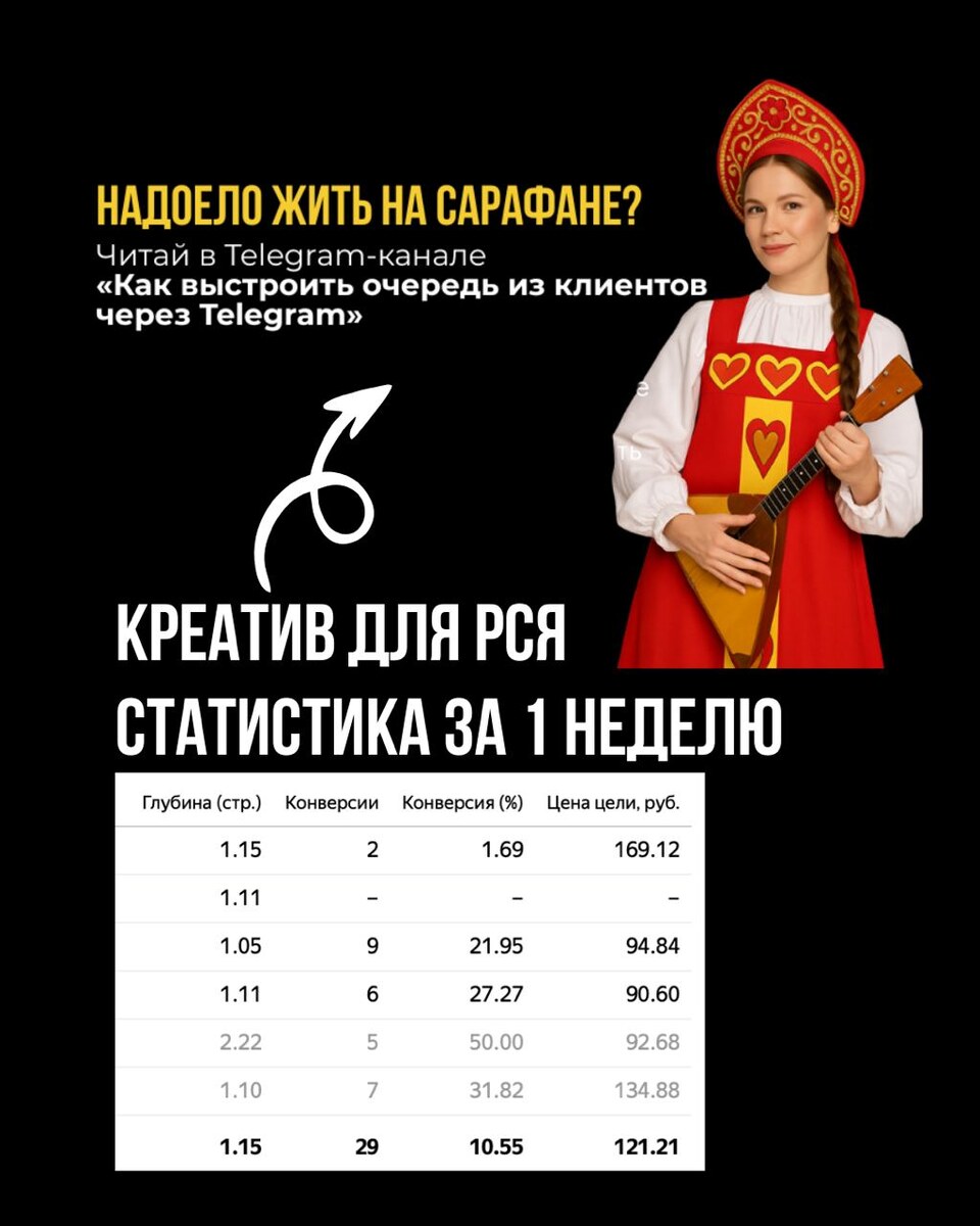 📍 Реклама в РСЯ - все же одна из моих любимых. Надо только постараться на старте. А дальше ты гуляешь, спишь - а подписчики растут. Вот за это ощущение «всё работает без меня и без сториз, рилз и прочей энергозатратной херни» я обожаю Директ!