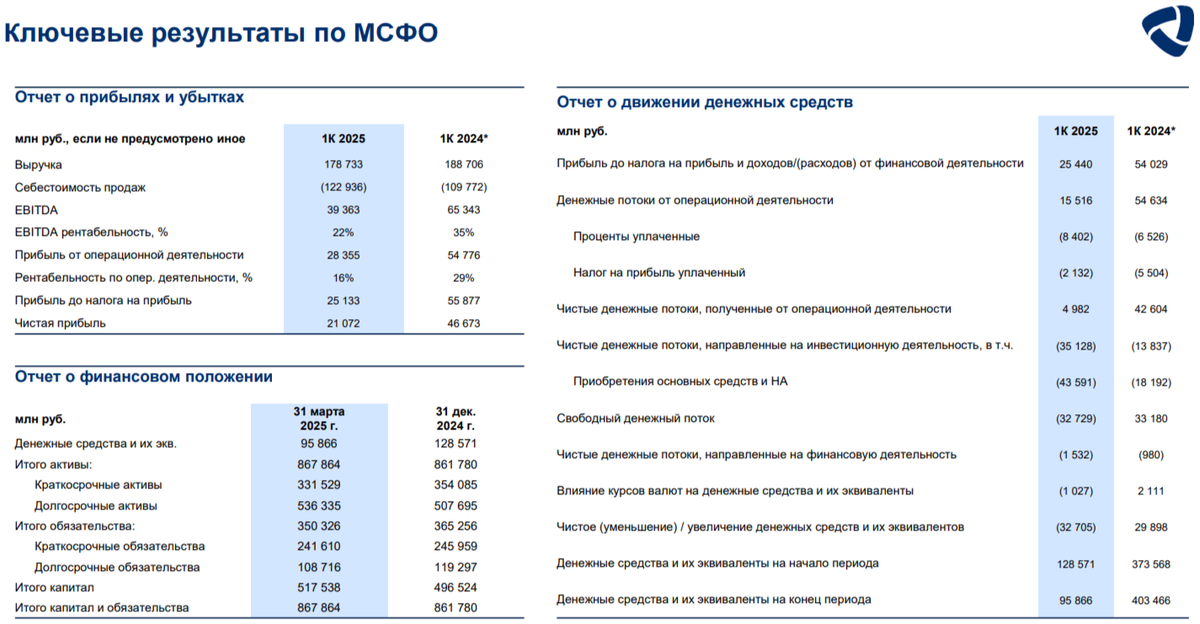 ▪️ EBITDA: I кв. 39,4₽ млрд (-39,8% г/г)