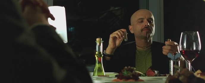 А прежде, чем начать.❗Ваши лайки, репосты, комментарии и подписки - главная мотивация для меня делать контент чаще, круче и интереснее) Так что не стесняйтесь подписаться и понажимать на кнопки под статьей, если вам нравится мой канал - это мне очень поможет! 🎮 Тихий залитый неоном ресторан. За столиком при свечах — человек, который знает горькую правду, и программа, обещающая ему сладкую ложь. На вилке поблескивает кусок сочного стейка, который не существует — просто строчки кода, иллюзия, способная обмануть человеческие чувства. Сайфер наслаждается каждым мнимым волокном мяса, каждым глотком вина, словно заключил сделку с самим дьяволом. В этот момент Матрица раскрывает одну из своих самых пронзительных тем: «неведение благо». Герой выбирает иллюзию вместо реальности, предательство вместо борьбы, лишь бы снова ощутить вкус, которого нет. Зритель наблюдает, как Сайфер говорит агенту Смиту: он хочет забыть все и вернуться в Матрицу. Горячий стейк тает во рту, а он улыбается и произнос