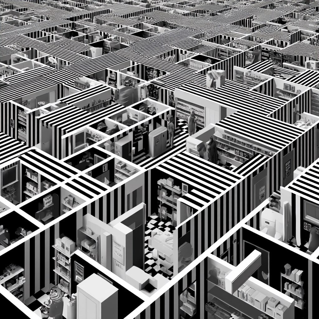 Создано на основе запроса: Isometric magnavoxel test pattern opart anamorphosis fluxus, greeblestereogram, cleanup on aisle 6 the back rooms