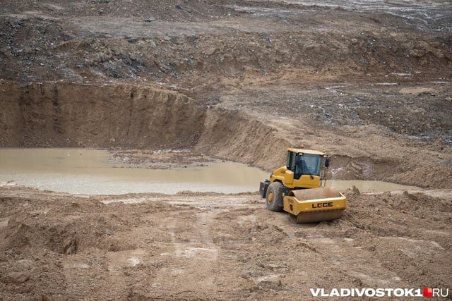 Бульдозер трудится за всех: строительство аквапарка «Аквапарадайз» на Русском снова зависло, сообщил корреспондент @vladivostok1, который побывал там 25 апреля.