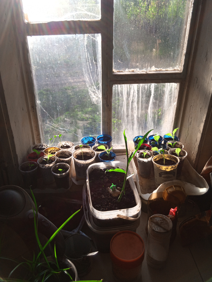 А шторку не прикроешь! Рассада, етит её налево. Кое-как пристроился. Эх, щас супчика куриного! 😋 Вчерась наварил. Купил куриных шей 800 грамм.