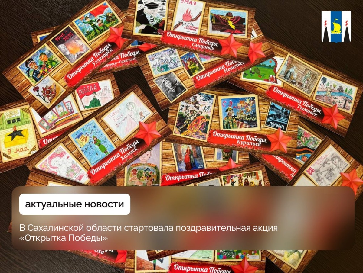 🇷🇺 К юбилейной дате Победы в Великой Отечественной войне в Поронайске были выпущены памятные открытки с рисунками детей - победителей