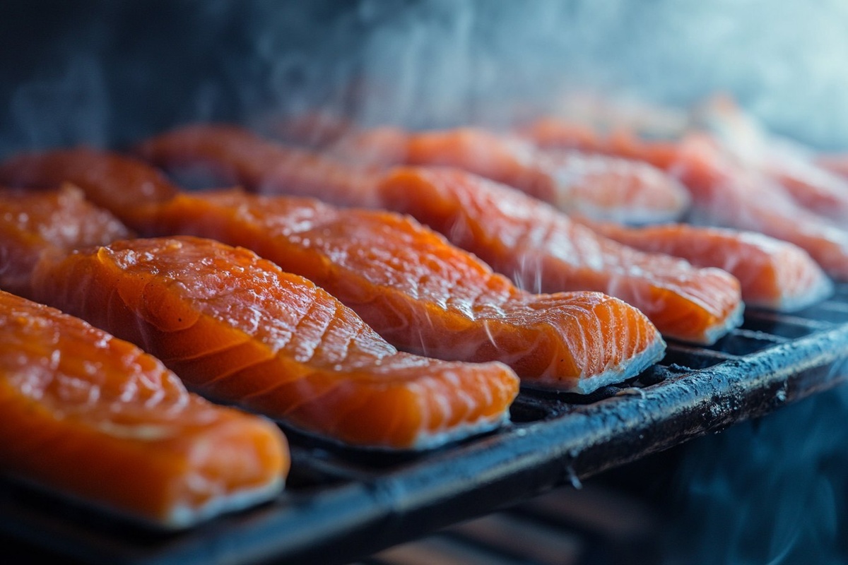 Создано на основе запроса: Title: Salmon Jerky In Smoker | STYLE: Close-up Shot right view | EMOTION: realistic as possible | SCENE: KEYWORD