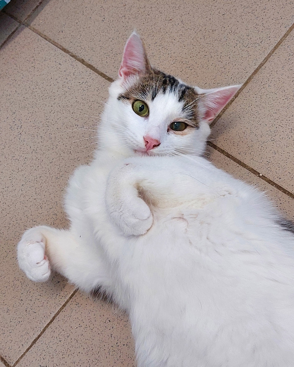 С таким позитивом можно и горы свернуть. И очень многие это понимают и пытаются подражать Максику. На самом деле Максик действительно уникален, как и все мы. Котик белый, с симметричными рыже-коричневыми пятнышками. Мордочка тоже удивительна пропорциональная. Как будто одели на него кепочку, с двумя одинаковыми козырьками). Максик любит всех, он потрясающий ласкун и певец. Сразу видно отношение у жизни. Зачем терять время, надо сразу получать удовольствие и радость.