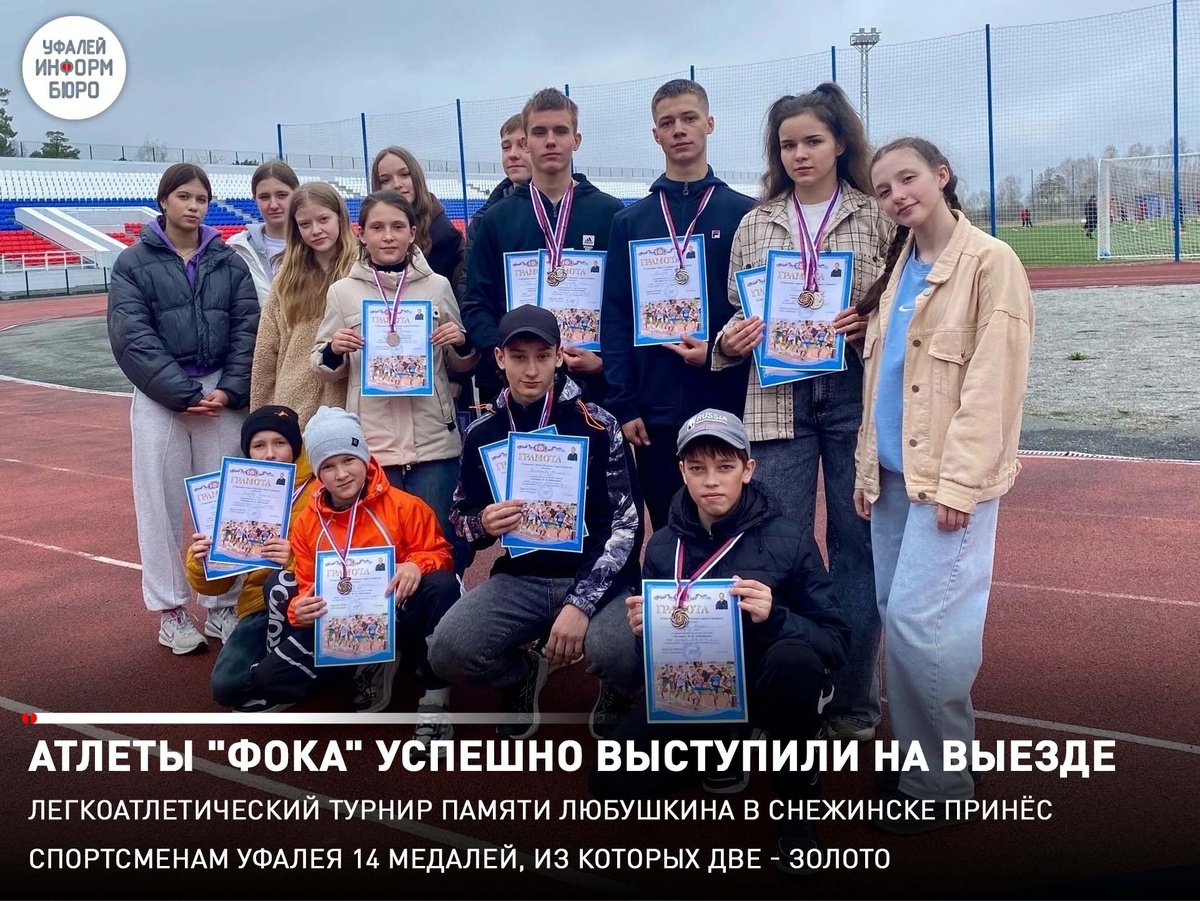 В Снежинске 26 апреля прошли соревнования по лёгкой атлетике, посвящённые памяти Ю.В. Любушкина. Верхнеуфалейский ФОК направил на этот турнир команду из 15 спортсменов. Участники состязались в беговых дисциплинах на дистанциях от 100 до 600 метров. В забегах на 100 метров победителями стали Таисия Шакирова и Евгений Николаев. Данил Титов и Иван Титов финишировали вторыми, а Степан Жильцов, Алёна Балабанова и Олег Тепляков заняли третьи места. На дистанции 300 метров серебряные награды завоевали Алёна Балабанова, Таисия Шакирова и Евгений Николаев. В забеге на 600 метров Данил Титов занял второе место, а Егор Серов, Варвара Сковорода и Олег Тепляков стали бронзовыми призёрами.