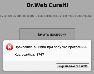 Дело о загадочном сбое Dr.Web CureIt!: «Произошла ошибка при запуске программы. Код ошибки: 1747»