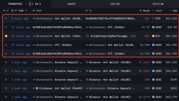 🔸Кит купил 30 тыс. ETH ($54 млн) и 600 BTC ($56,7 млн) на OTC через Wintermute