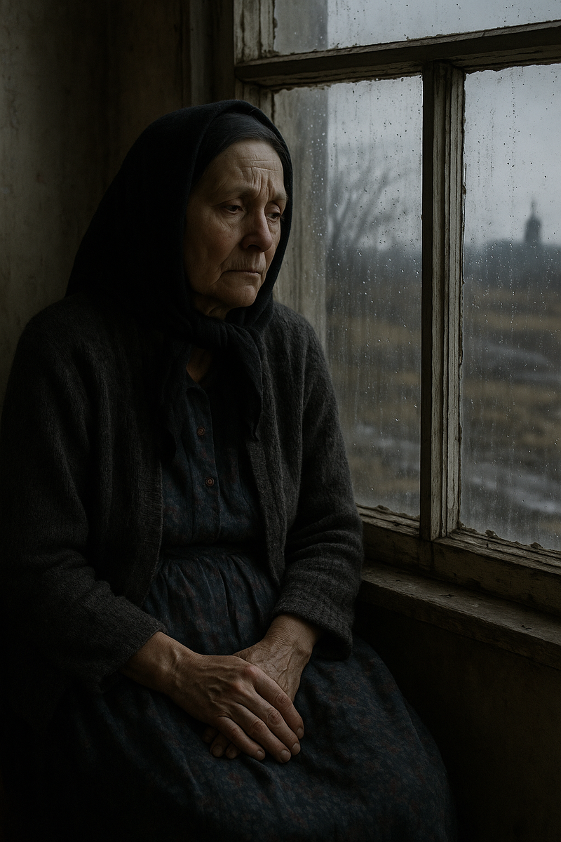 I. Затишье В маленькой, будто забытом Богом, доме, что приник к обочине старого тракта, где с весны вёслами гремят лягушки, а зимой тишина так густа, что слышно, как плачет снег под чужими сапогами, — у мутного окна сидела вдова. Окно было в пятнах от времени, от осенних бурь, от неумытой пыли; за окном — серость, оттаивающая земля, лохмотья недопаханных нив, чёрные пятна кустов, да дальняя, в дымке, колокольня с ослепшей золочёной главкой. И сидела она, недвижная, сгорбленная, в серой кофте, чьё плечо разошлось у шва, в платье ситцевом, истёртом до истончения, и казалась она сама частицей этой тоскующей весны, обронённой жизни, истлевшего в забвении времени. Ни слёз уже не было в её глазах — лишь мутный, молчаливый взор, устремлённый вдаль, где когда-то, кажется, пел колокол, а теперь только клекотал ворон на пустыре. II. Воспоминание Её рука, жиластая, морщинистая, с костяшками, выпирающими, как холмы на выжженной земле, медленно двигалась по подолу. Пальцы трогали ткань, как трогают