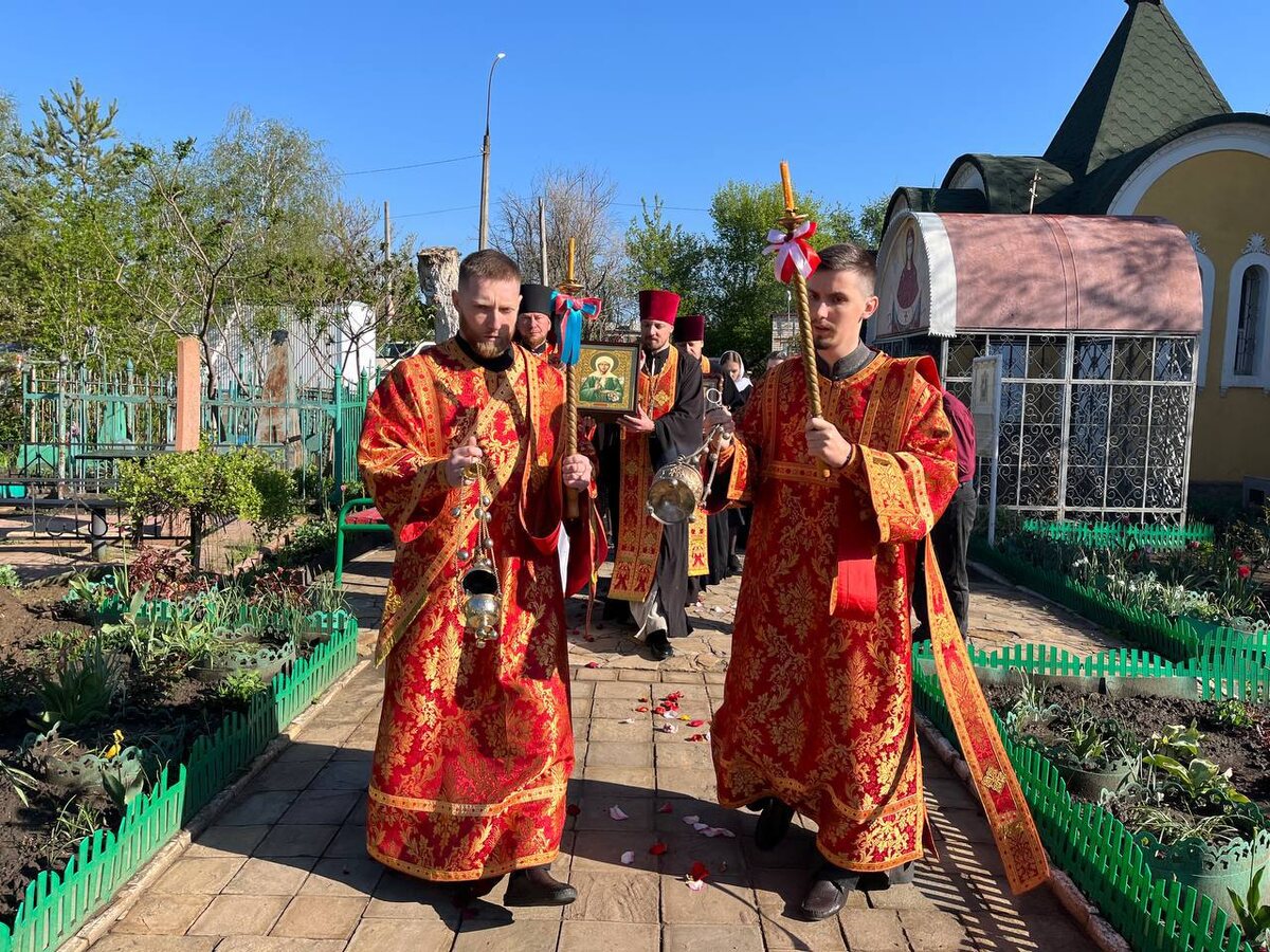 27 апреля, во 2-ю Неделю по Пасхе, апостола Фомы, Антипасхи, по благословению наместника Вознесенского мужского монастыря архимандрита Иоанна (Сухина) протоиерей Артемий Кравченко возглавил Божественную литургию на луганском Всехсвятском подворье. Перед началом богослужения духовенство подворья с верующими встретили частицы мощей Великомученика и Победоносца Георгия и Блаженной Матроны Московской. Святыни будут находиться на подворье по 11 мая. По традиции в 12:00 и 16:00 совершаются водосвятные молебны с акафистом. В конце службы верующие приложились ко Кресту, после чего присутвующим были розданы частицы артоса, раздробленного накануне на субботней литургии.