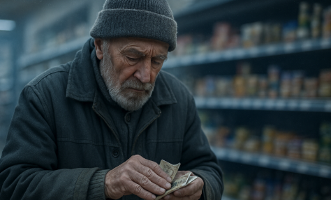 Пальцы дрожали от холода — на улице с утра тянул резкий ветер, а в магазине, хоть и теплее, всё равно словно щипало за кожу. Перед ним на ленте лежало всего ничего: батон хлеба, пакет молока, маленький кусочек мыла.