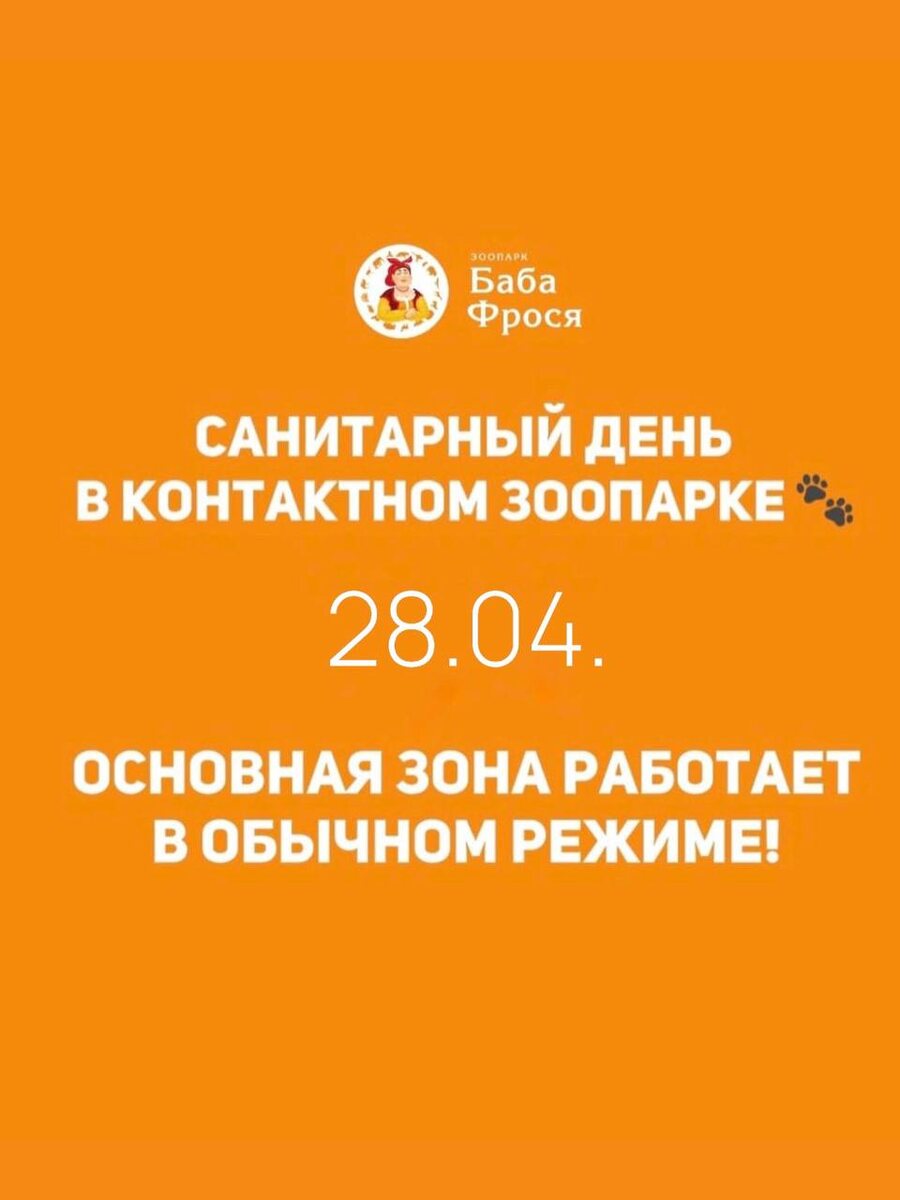 📣 Важная информация 📣 В нашем контактном зоопарке по адресу Боевая 64/4 сегодня проходит санитарный день!🧼 Основная зона зоопарка продолжает работать в обычном режиме с 11:00 🕚 Мы заботимся о комфорте и безопасности наших посетителей и питомцев, поэтому просим вас с пониманием отнестись к временным ограничениям. Ждем вас в гости! ✨