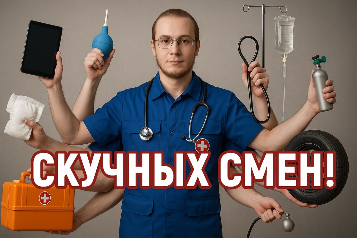 Сегодня отмечается День работника Скорой помощи. С праздником всех - и врачей, и фельдшеров, и медбратьев-медсестёр, и водителей! У сына сегодня как раз праздничная смена. Он периодически жалуется, что рук не хватает, нейросетка это быстро исправила, надеюсь, теперь всё норм )
