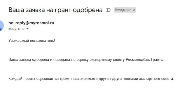 На выходных пришли хорошие новости по заявке в РосМол. Первый, технический этап прошли) Теперь ждем окончательного решения комиссии. Предварительно 17г мая будет решение А это уведомление показывает, что мы собрали полный, а самое главное правильный пакет документов, правильно упаковали идею, подготовили все письма поддержки. Провели большой объем работ