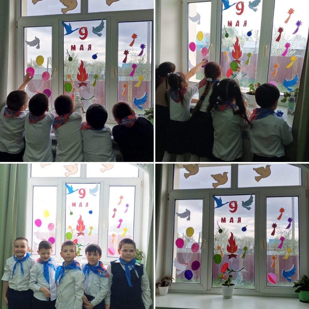Сегодня наши маленькие "Орлята" из МБОУ "Стародрожжановская СОШ №1" вместе с классным руководителем Ахметовой Г.М. украсили окна класса в рамках акции #ОкнаПобеды!