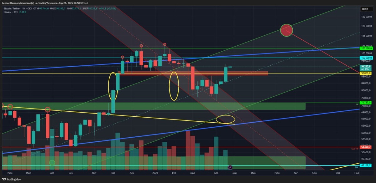⚠️Итак, коллеги, закрылась неделя, началась новая, позитив озвученный и подтвержденный фактами неделю назад полностью себя оправдал и отработал. Как результат, мощно пробила зону уровня 90К и там же закрыли неделю!!