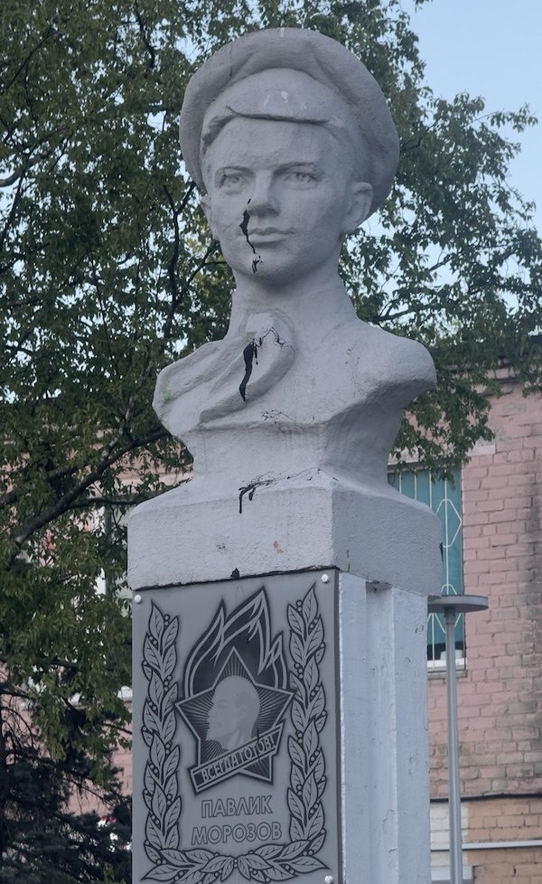 В Калининграде облили краской бюст пионера-героя Павлика Морозова, установленный на одноименной улице, сообщил «Новому Калининграду» очевидец. По их словам, памятник ранее был приведён в порядок. «Или в прошлом году, или в позапрошлом его обновляли. Недавно не было краски, а тут явно специально залили „лицо“», — сообщил собеседник «Нового Калининграда». Как сообщает сайт мэрии, бюст Павлика Морозова был установлен на улице, носящей имя пионера, убитого кулаками в 1932 г. «История Павлика Морозова (1918–1932 гг.) является одной из самых противоречивых легенд советской эпохи, — сообщается на сайте горадминистрации. — Памятник установлен в 1981 г. Авторы — скульптор М. С. Постнова и архитектор Е.П. Тронин. Материал памятника — бетон, доломит». Постановлением Правительства Калининградской области от 23 марта 2007 года № 132 бюст Павлика Морозова получил статус объекта культурного наследия местного (муниципального) значения. Фото предоставлено очевидцем