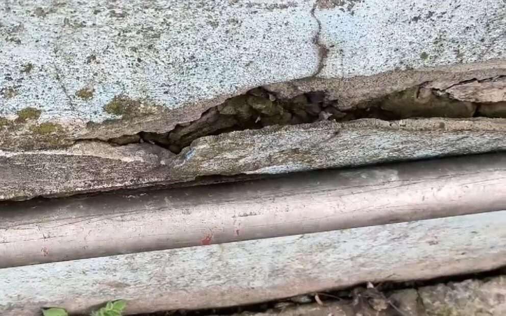 Женщина отмечает, что нужно срочно ремонтировать стены с торца дома, а также фундамент и отмостку, поскольку там образовались огромные трещины.