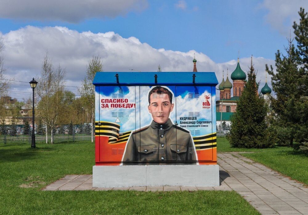 Портрет размещен на трансформаторной подстанции «Ярэнерго» в парке 1000-летия. Чтобы изображение героя выглядело торжественно и в вечернее время, на энергообъекте смонтированы светодиодные светильники, включающиеся одновременно с уличным освещением. Рисунок по заказу «Ярэнерго» к 80-летию Великой Победы выполнили художники творческого объединения «ЮНИК». Александр Сергеевич Кудрявцев родился 12 марта 1909 года в Санкт-Петербурге в семье рабочего. В 1933-м после демобилизации приехал в Ярославль, через 2 года поступил на работу электромонтером в электроцех ТЭЦ ЯРАК. Ушел на фронт в феврале 1942-го, а в 1944 году был назначен командиром танка Т-34. Экипаж танка под управлением лейтенанта Кудрявцева совершил ряд героических подвигов. Александр Сергеевич храбро сражался в боях в Венгрии и Австрии и погиб в Вене 11 апреля 1945 г. Посмертно награжден орденом Красного Знамени и орденом Ленина. В 1946 году за «образцовое выполнение заданий командования и проявленные мужество и героизм в боях
