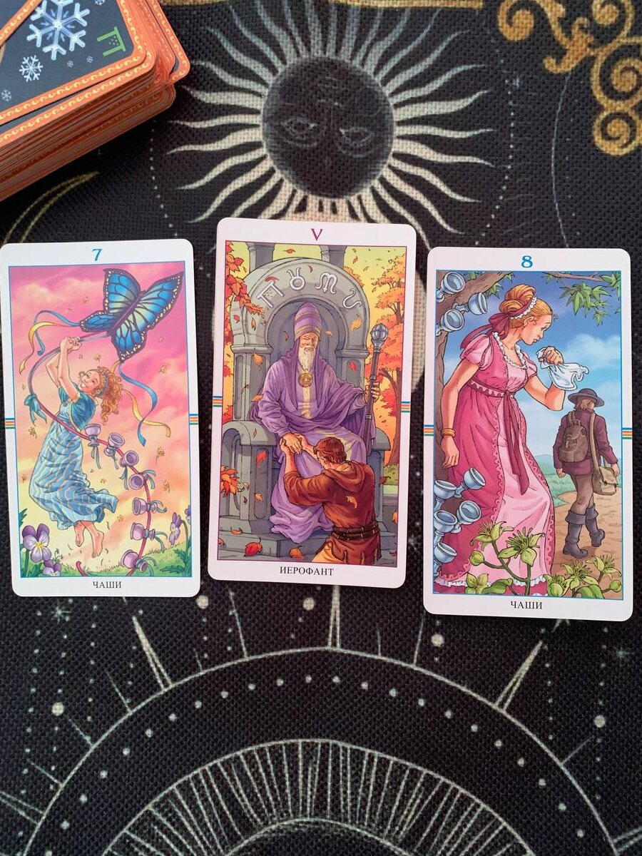1. Неделя пройдёт в планах и мыслях, нежели в реальной жизни. Важно сильно не погружаться в фантазии и серьезнее относится к делам. 2. Вы можете получить мудрый совет, с кем-то доверительно побеседовать. Обучение (у моей подруги часто выпадает перед сессией). Встреча с мужчиной или с человеком с одним взглядом на жизнь, духовная связь. Вопросы этики, возможно, заключение официального брака. Иерофант нередко выпадает тогда, когда человек начинает задумываться и оценивать свой жизненный путь. 3. На этой неделе нужно будет сменить направление деятельности, с чем-то попрощаться. По этой карте идет осознанный отказ от изживших целей. Состояние усталости и подавленности. Не забывайте оставлять сердечки🤍