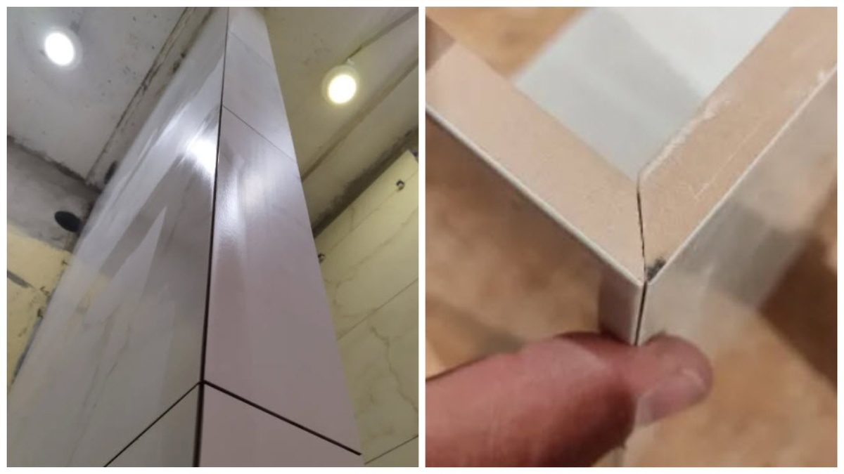 А зачем вообще делать запил плитки? Чтобы не использовать разные уголки, сделать эффектный и красивый нахлест, который оформит все внешние углы.