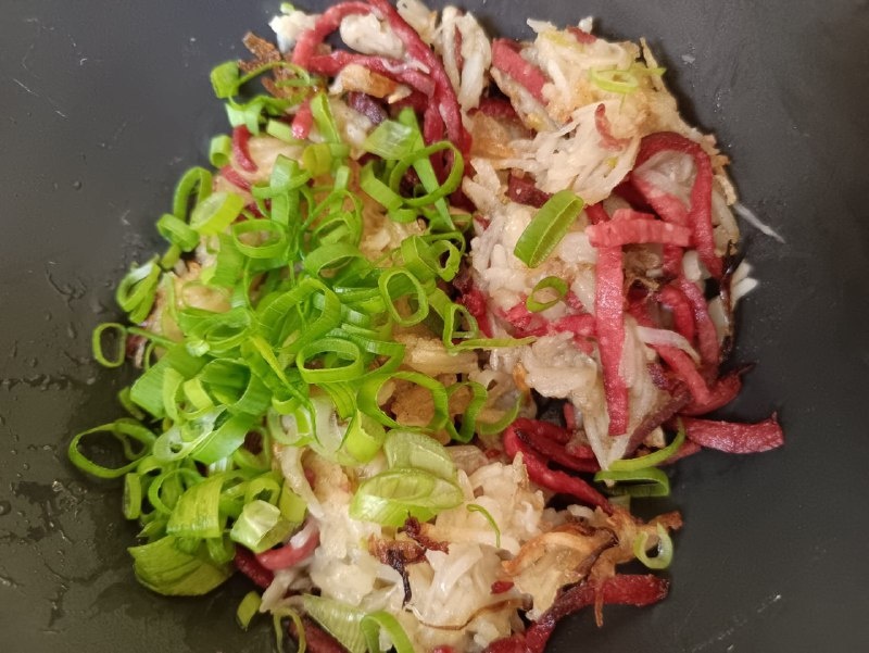 Способ нарезки меняет вкус привычных продуктов. Вот еще одно тому доказательство – картофельная соломка по-корейски. Блюдо очень простое, не острое, не требующее специй. Понадобится терка для корейской моркови. Или немного усердия, чтобы нарезать картофель вручную. Жарить предпочтительно небольшими порциями. Две-три крупных продолговатых картофелины очистить и превратить в мелкую соломку. Замочить в холодной воде минут на пять. Промыть от крахмала, откинуть на дуршлаг. Таким же образом нарезать 50 г ветчины и белую часть зеленого лука (количество по вкусу). Зелень можно использовать любую. Для постного варианта вместо ветчины подойдет морковь. Разогреть в глубокой сковороде растительное масло, в таком количестве, чтобы покрывало один слой картошки. Сначала обжарить картофельную соломку и лук до мягкости, затем всыпать ветчину. При желании, раздавить пару зубчиков чеснока. И ждать золотистой корочки. Готовое блюдо посыпать мелко нарезанным зеленым луком. Соли добавляйте по-минимуму.